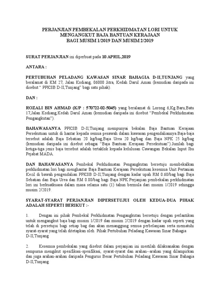 Contoh surat perjanjian pengangkutan lori. Contoh surat perjanjian sewa tanah rumah com. Kedua belah pihak dengan ini menerangkan bahwa pihak pertama selaku pemilik sah telah setuju untuk menyewakan kepada pihak kedua, dan. Perjanjian kontrak an pengangkutan kenderaan onkyo adaza 15 orang.